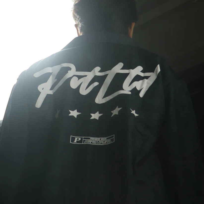 The Blaze Grid Zip-Up delivers a perfect balance of statement style and subtle detailing. Designed in a navy grid-check fabric, this lightweight jacket features a bold flaming "P" logo on the chest and a striking Patta script print across the back, finished with five stars for a bold graphic edge.