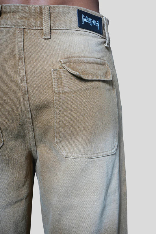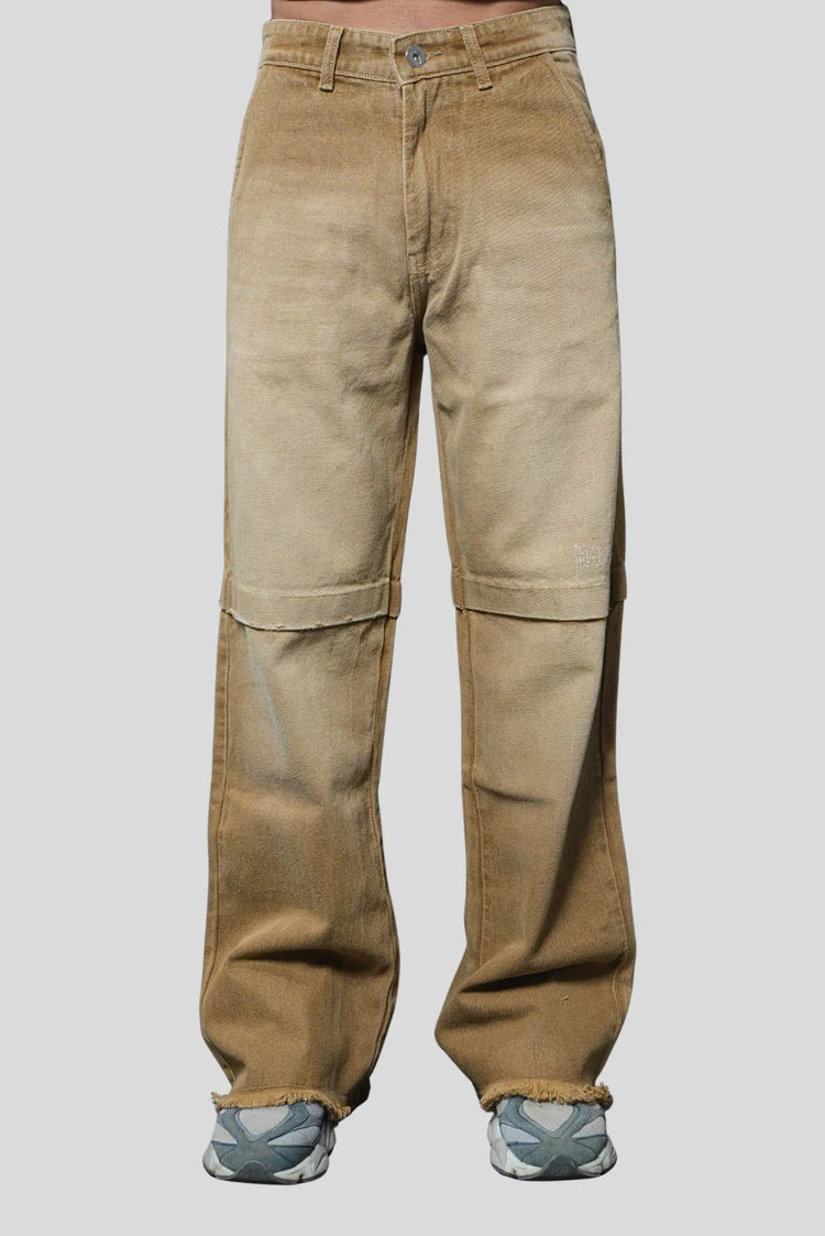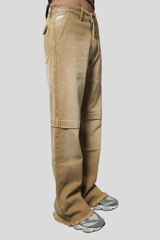 Meet BROWN PATCH WAY, a unisex piece crafted for those who thrive at the intersection of raw streetwear energy and elevated minimalism. These wide-leg trousers feature a seamless gradient brown wash and distinctive patch detailing, creating a rugged yet refined aesthetic. The subtle frayed hems and structural panel stitching redefine everyday silhouettes, making this piece a versatile statement — whether styled for bold street looks or understated futuristic fits. Built for individuality and made to age beautifully, BROWN PATCH WAY brings utility-inspired design into the realm of high-concept fashion.