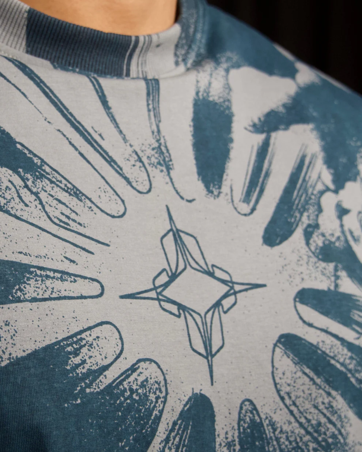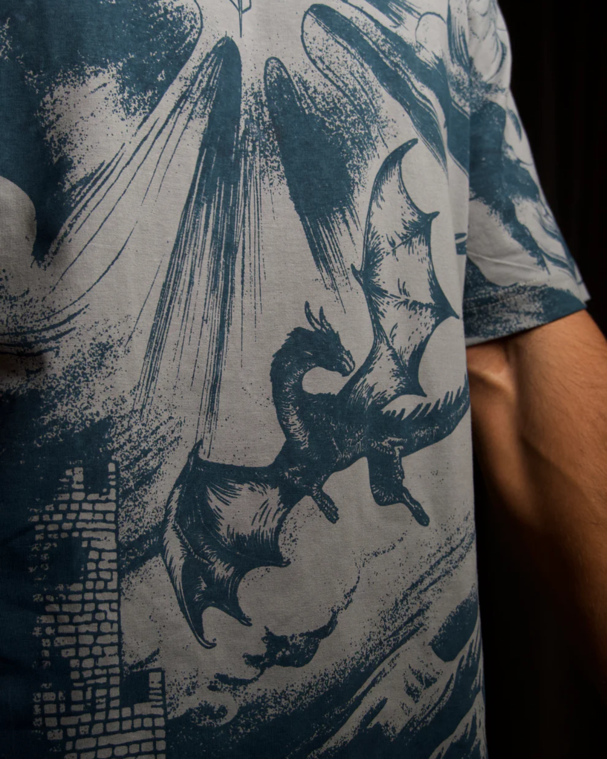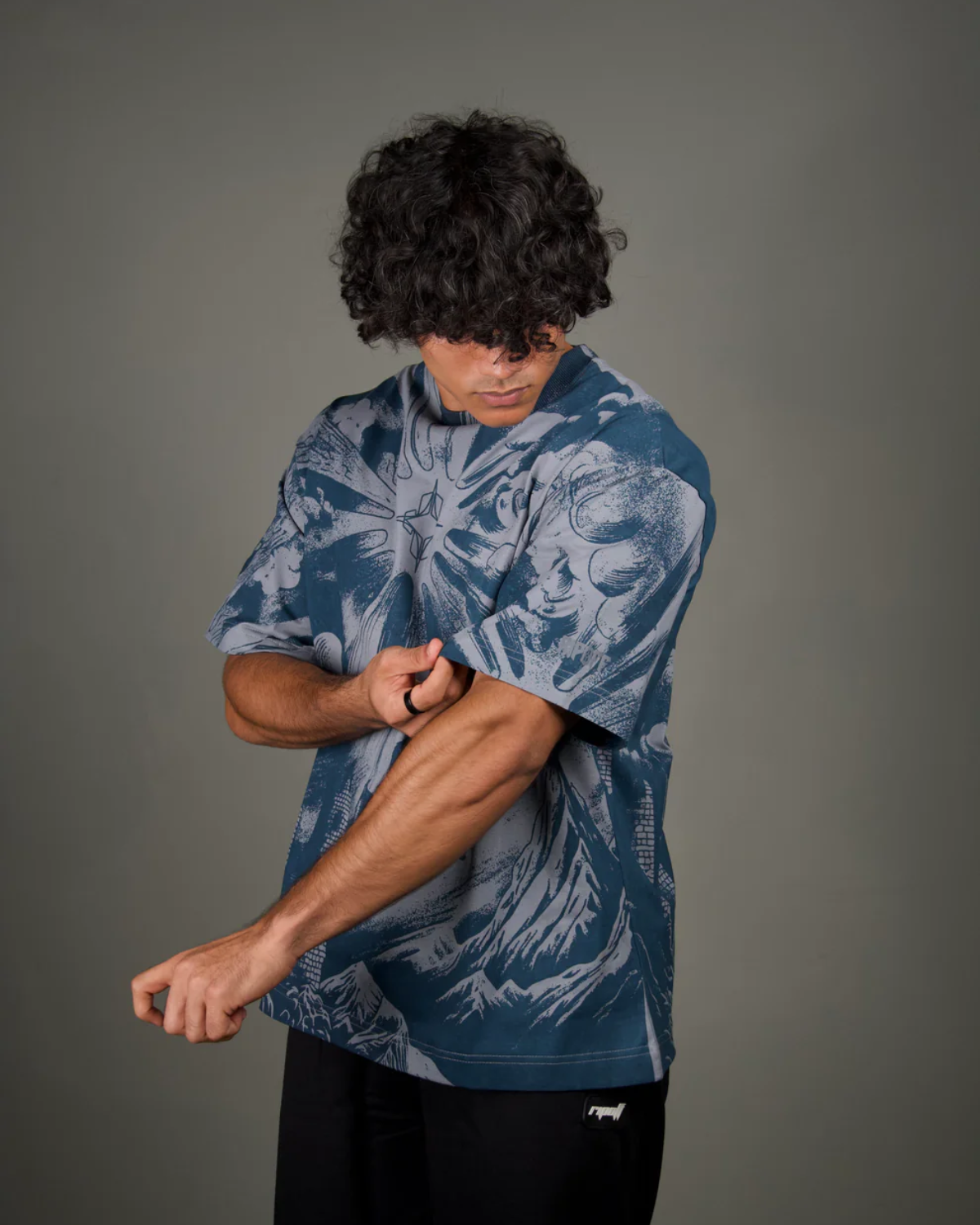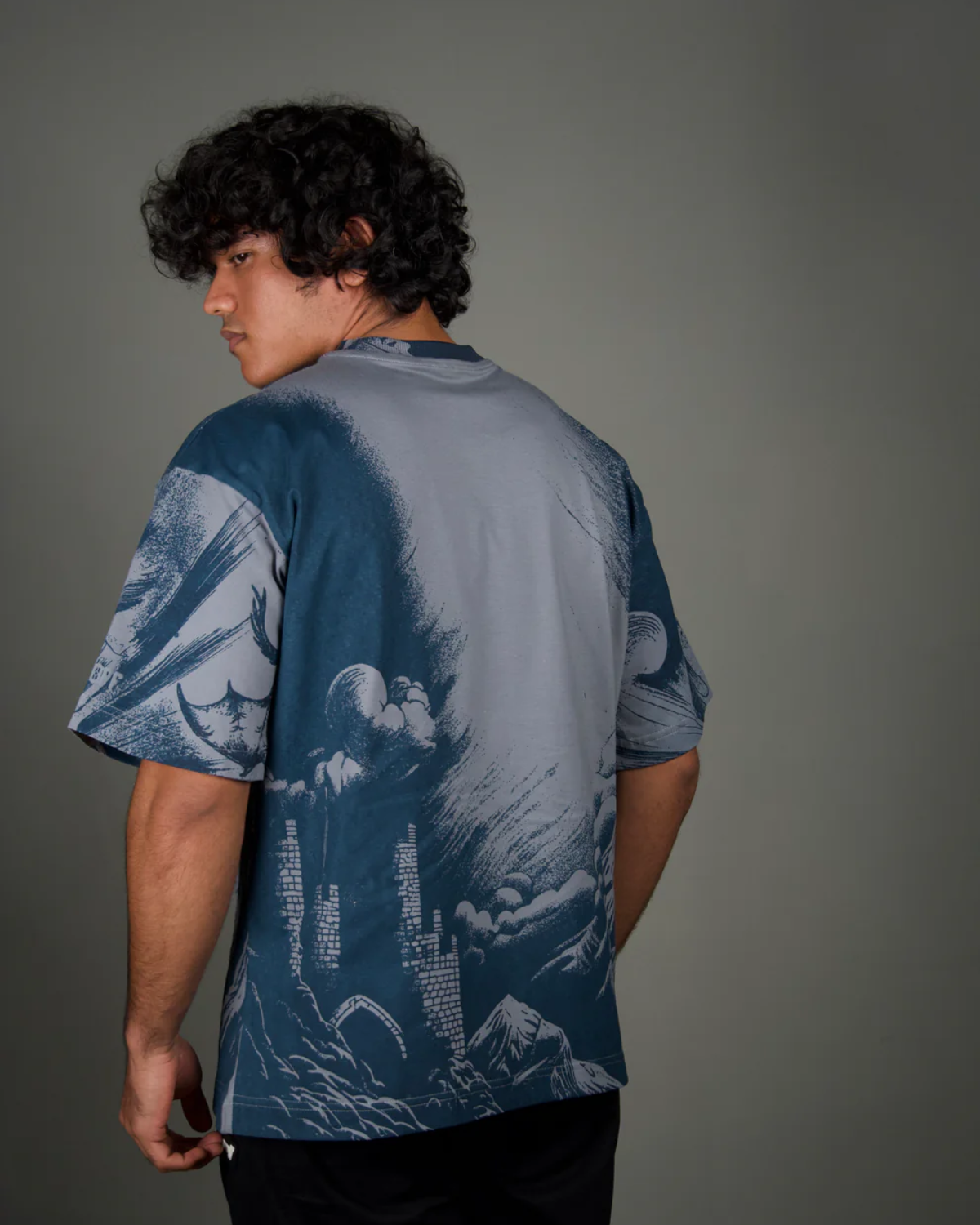 Detailed graphic all over the pieceOversized-Fit100% Terry CottonEnhanced Mock neck220 GSM Medium weight tshirt