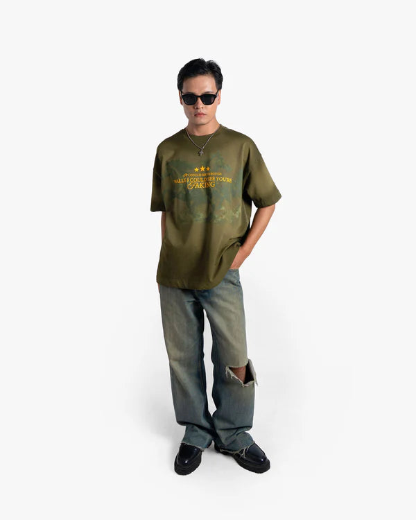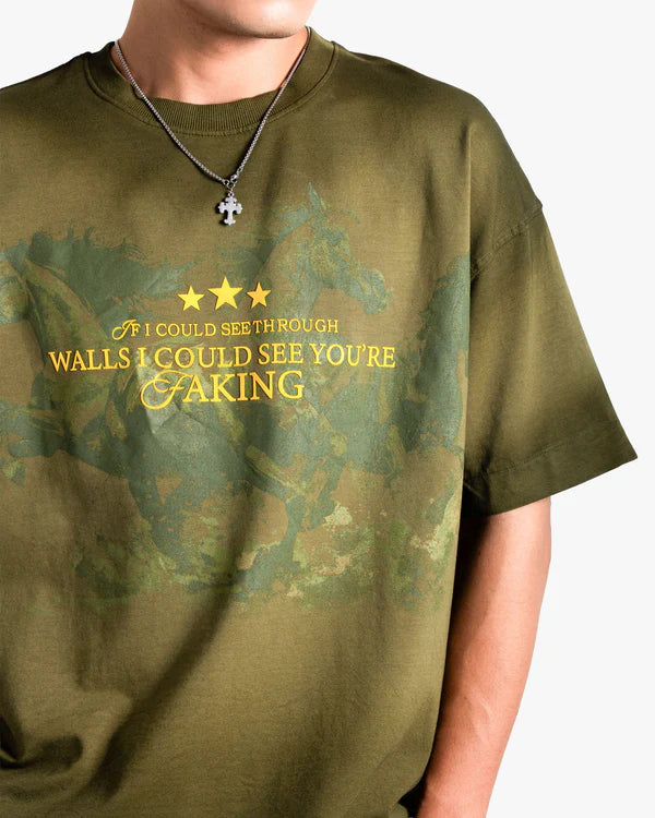 The FAKING Oversized T-Shirt is a standout streetwear essential, made from Cotton Spandex Terry Looper (250 GSM), it blends structure, stretch, and supreme softness in every wear. The unique pigment wash combined with a sprayed ombré effect gives this tee a one-of-a-kind gradient fade—nodding to rising ombre t-shirt and spray-wash tee trends.