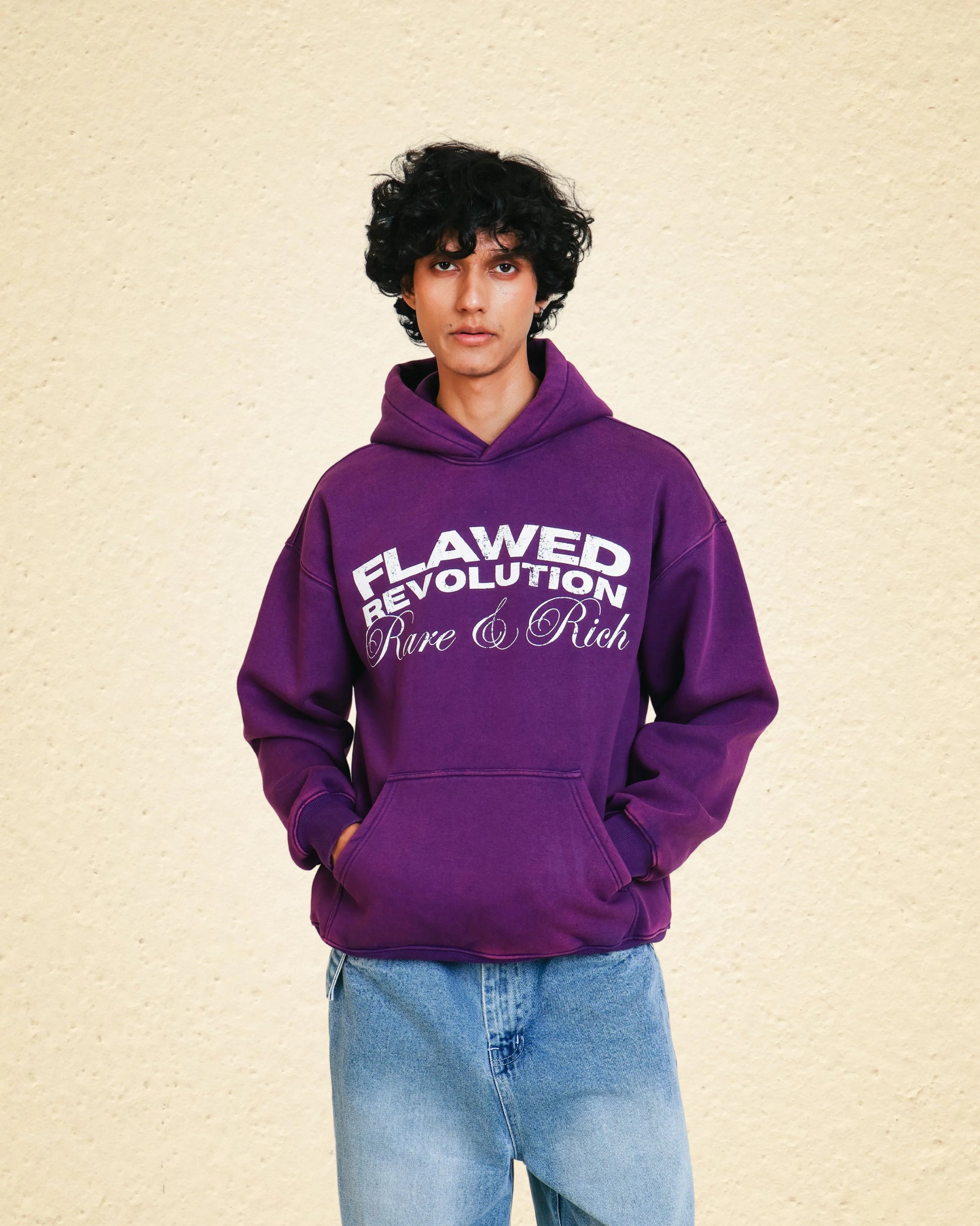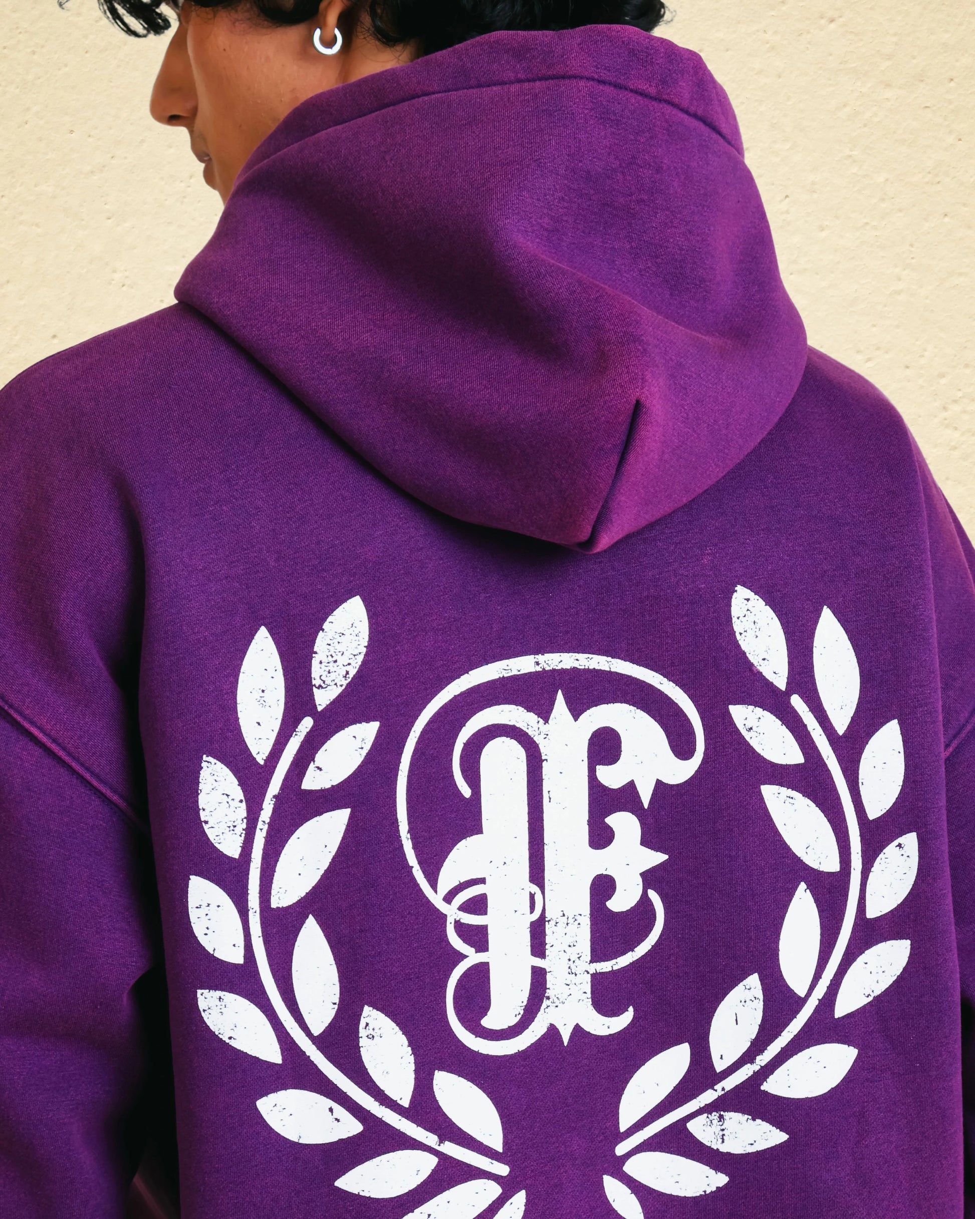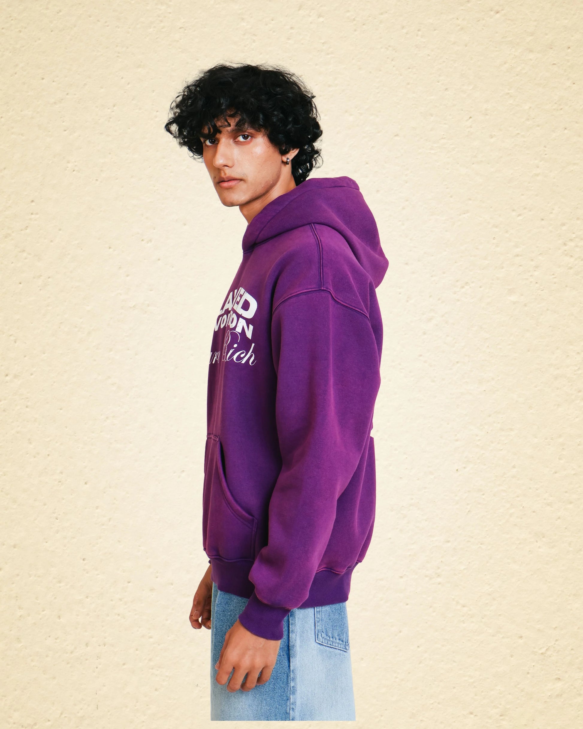 The Grapevine Desire Hoodie features a stylish purple color and stonewash effect, adding a rugged streetwear look. Its embroidery on the front and chest gives the hoodie a touch of luxury, making it a must-have for fashion-forward individuals.