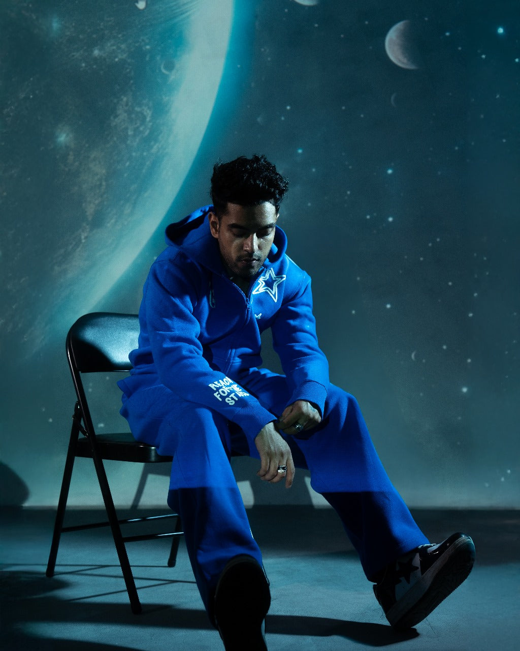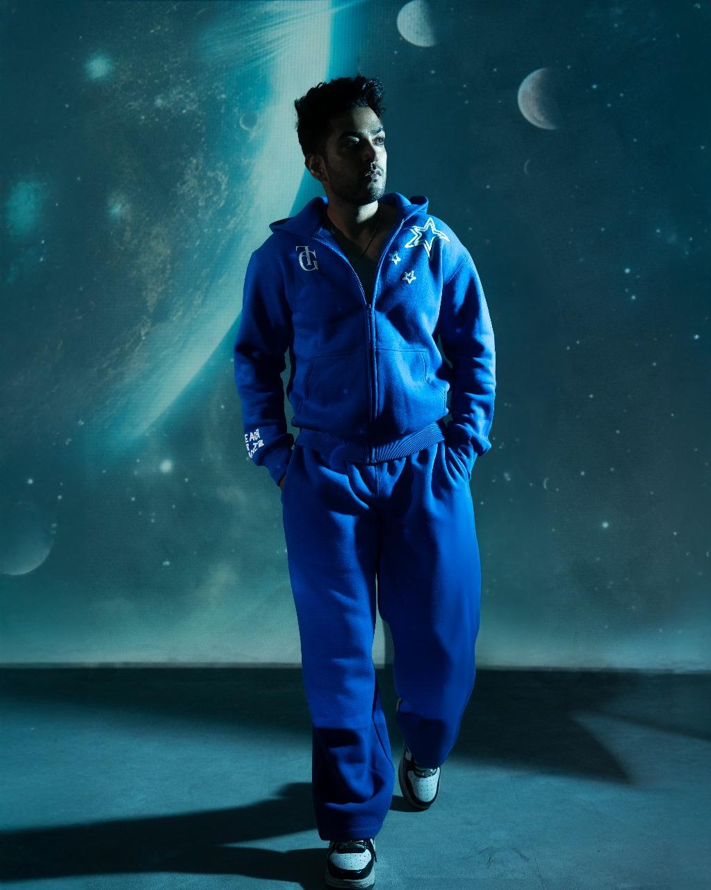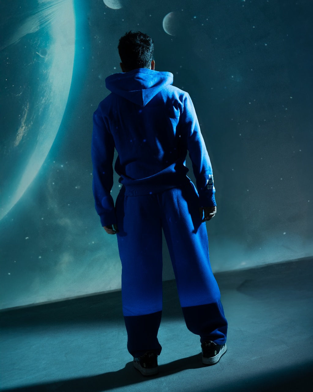 A blue loungewear set featuring a lion and star design with the phrase “Reach for the Stars.” Comfortable and stylish, perfect for relaxation or casual wear.