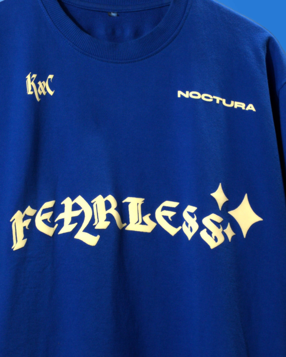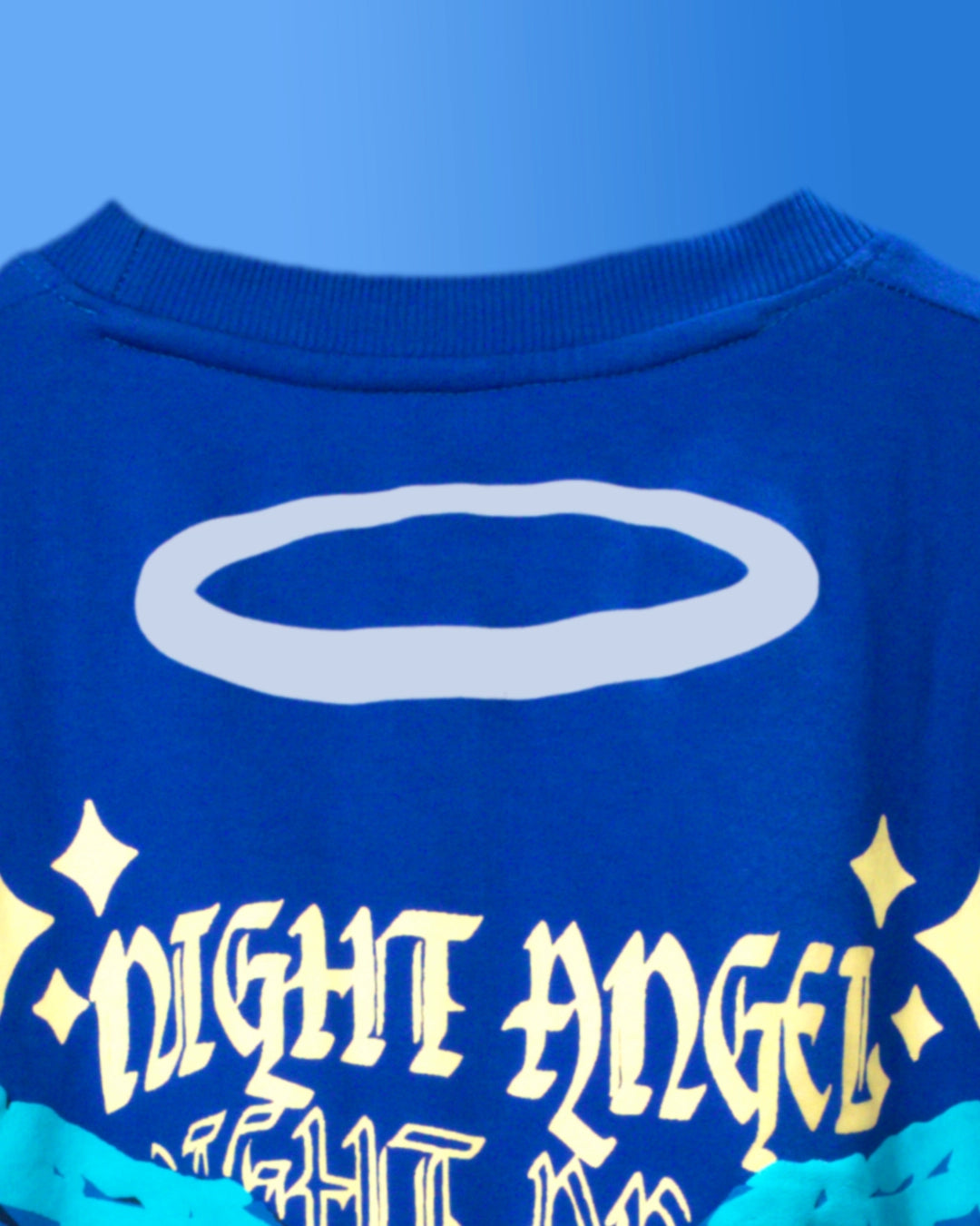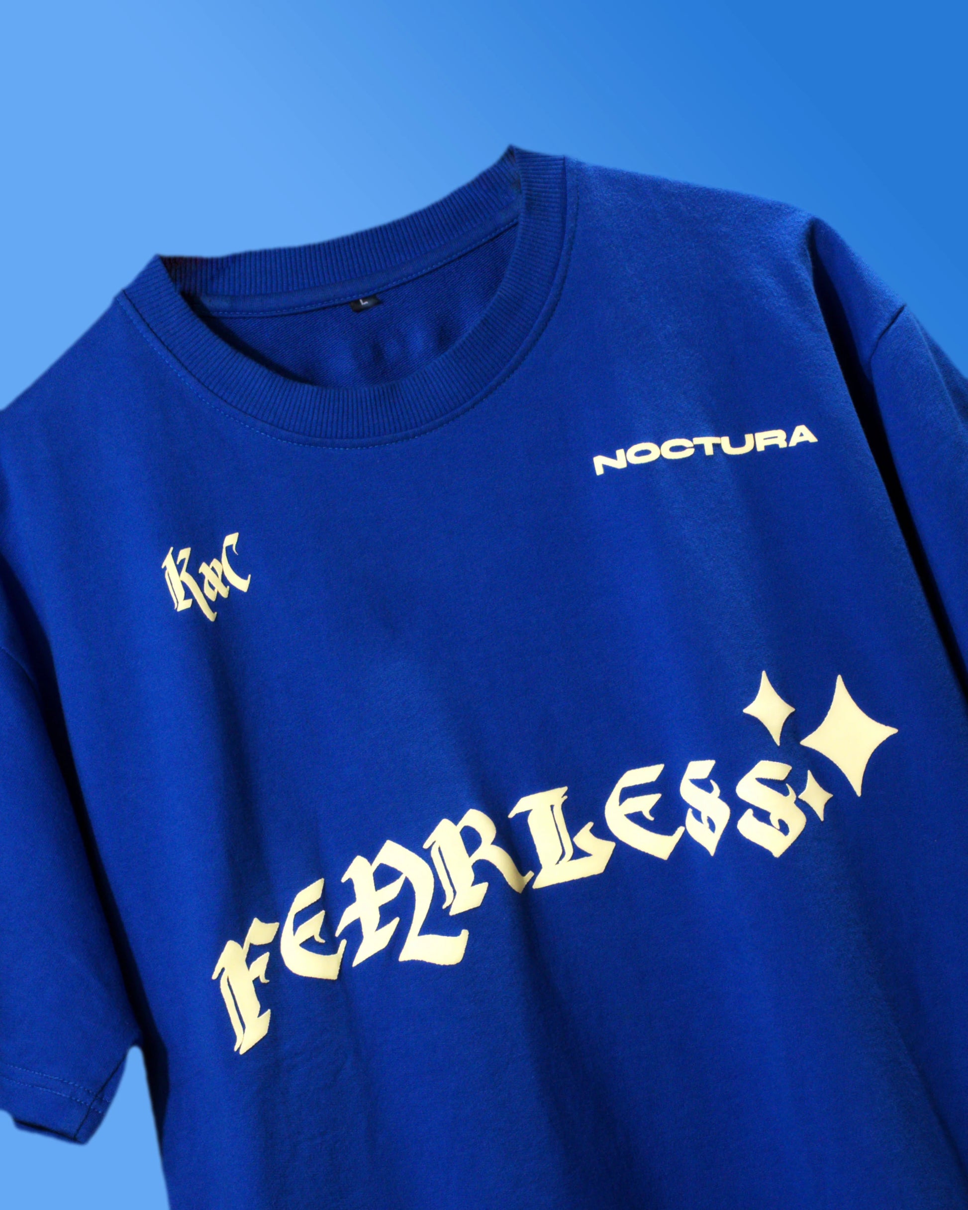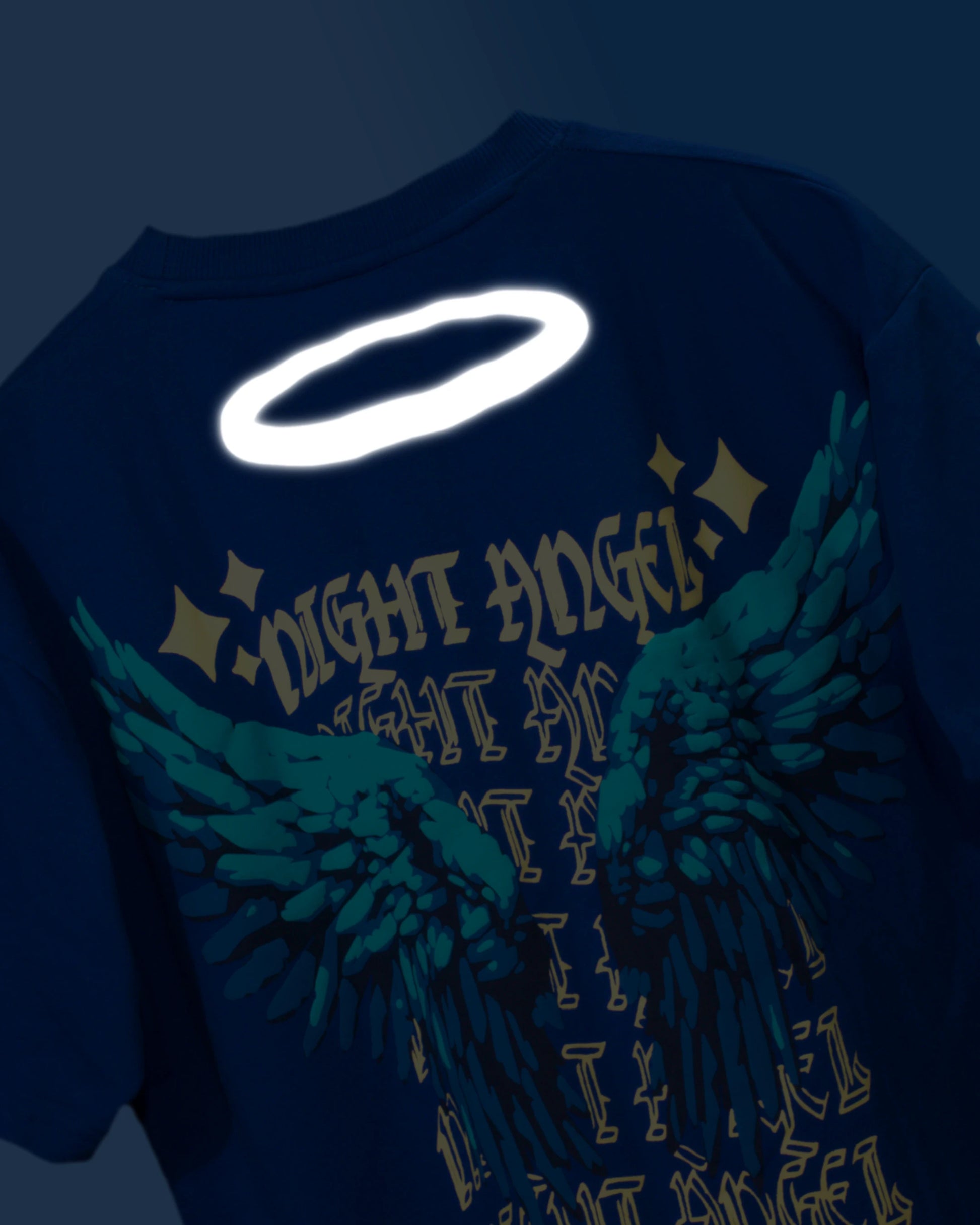 NOCTURA's "Night Angel" tee is meticulously crafted from premium French cotton terry. This garment provides a sophisticated blend of comfort and style, showcased in a royal blue hue with cream accents for a polished look. The name "Night Angel" aptly reflects its distinctive design, making it an exceptional addition to your wardrobe. The back features intricately puffed wings and a reflective halo, enhancing visibility in low-light environments. The front bears the inscription "Be Fearless," acting as a personal mantra. This tee portrays that you are a night angel spreading the light and aura in dark hours. You fear no one and are ready to conquer the depth of the dark and as well lead other towards the light. The puffed wings offer a dimensional aspect to the design, while the reflective halo adds a heavenly celestial glow. Ideal for evening wear, this tee is tailored for individuals who value both elegance and confidence. Elevate your wardrobe with NOCTURA's seamless blend of sophistication and boldness.