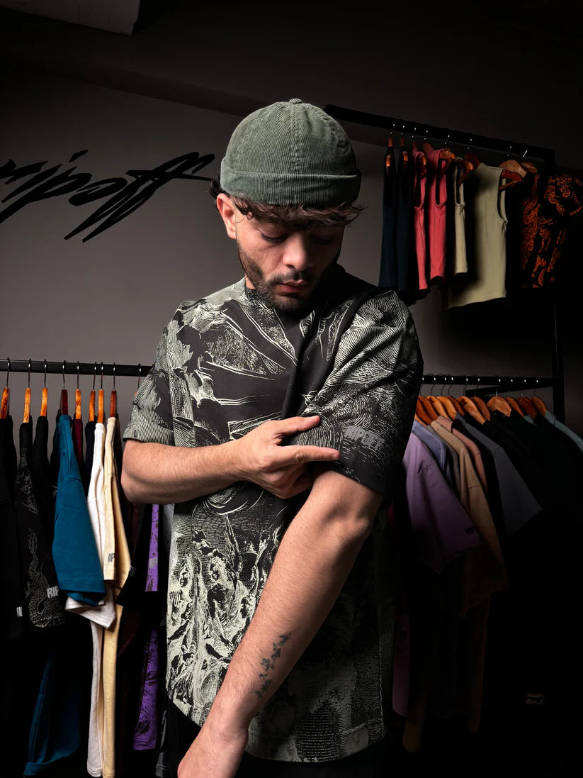 Detailed graphic on the back/front and sleevesOversized-Fit100% CottonEnhanced Mock neck250 GSM Heavy-Weight tshirt