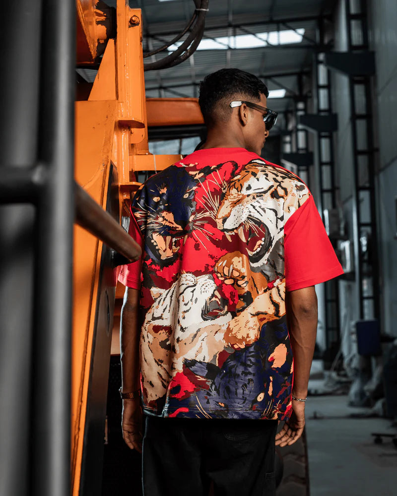 RIVAL ROAR TIGER RED TEE is pure chaos, captured in cotton. Featuring a bold puff print of five tigers locked in battle across the back, this piece roars with raw energy and dominance. Made from heavyweight 240 GSM French Terry Cotton, it delivers a structured, premium feel without compromising comfort. It’s more than just a tee — it’s a symbol of power, rivalry, and untamed spirit.