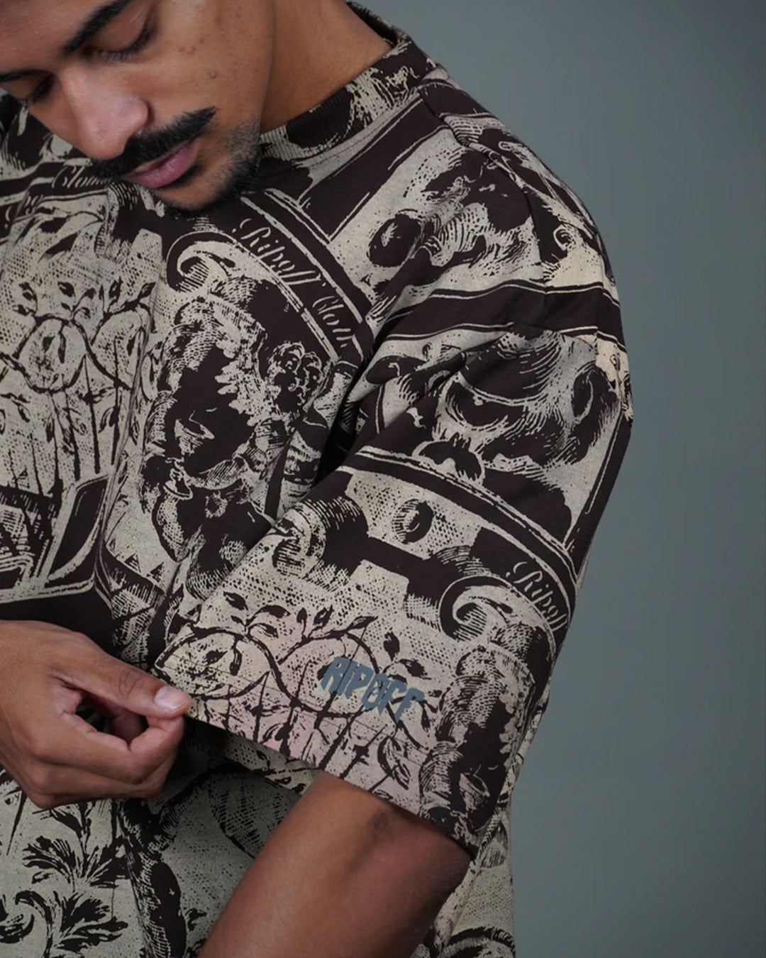 Detailed graphic on the back/front and sleevesOversized-Fit100% CottonEnhanced Mock neck250 GSM Heavy-Weight tshirt