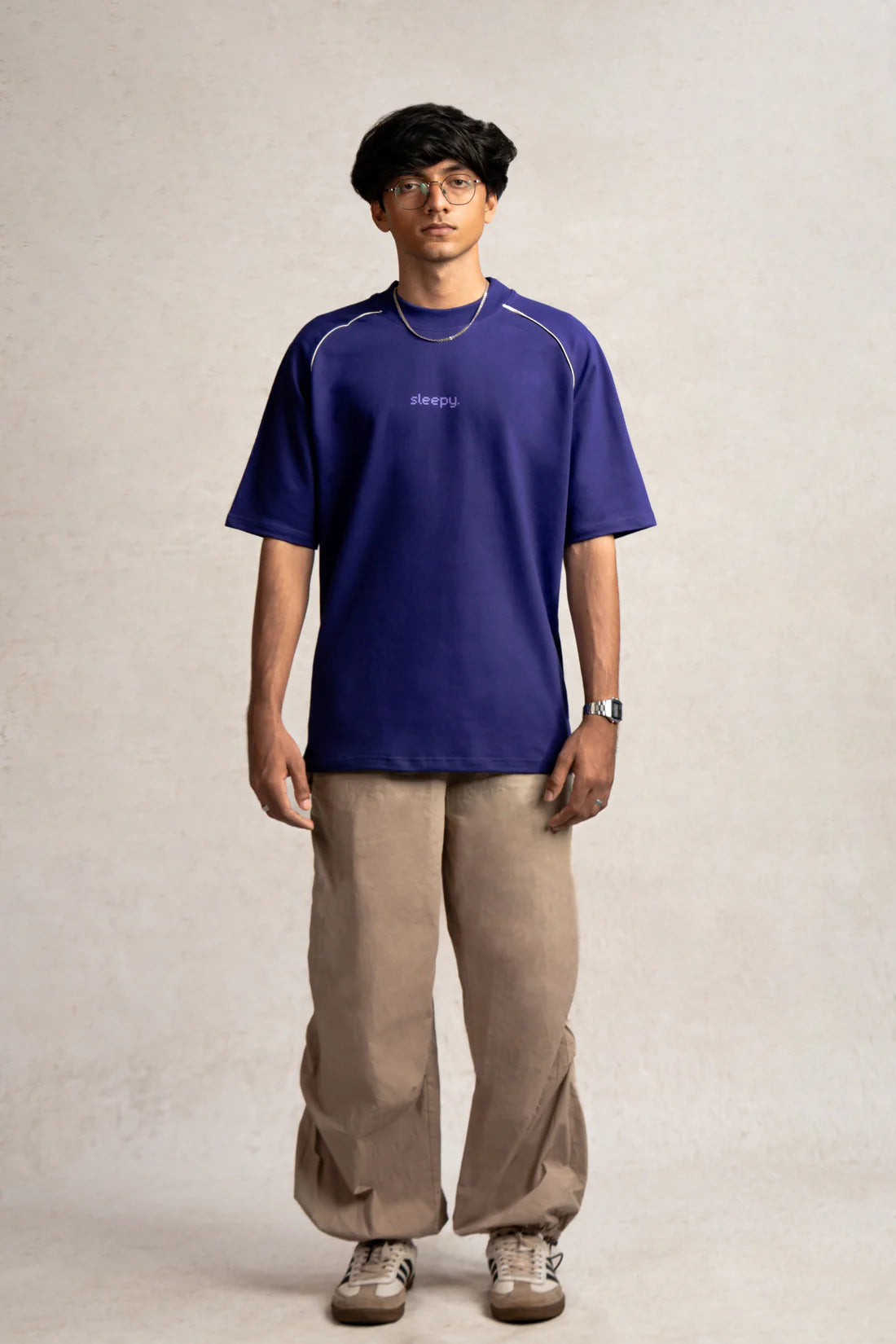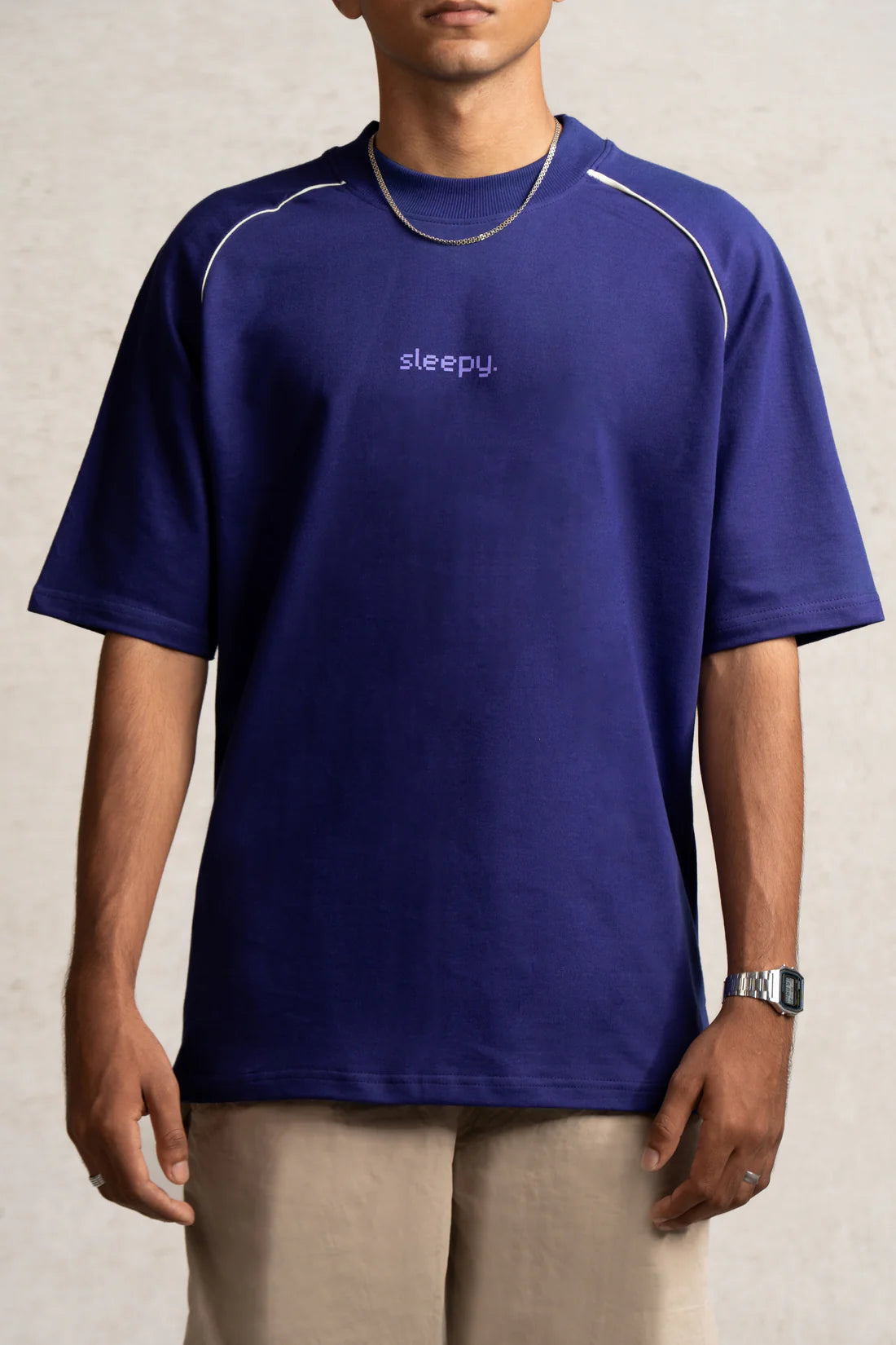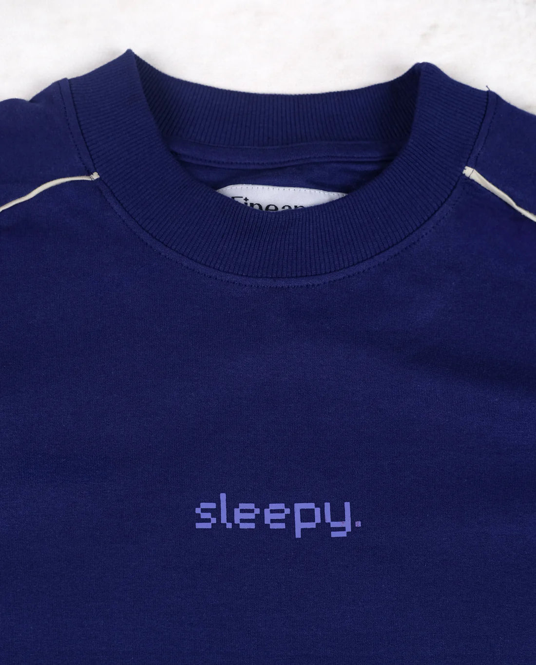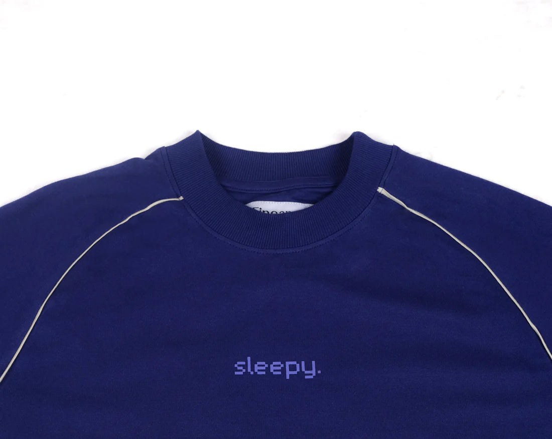 The Sleepy Tee is an ode to slow mornings and unapologetic ease. Crafted in a rich Indigo hue with sharp white piping, it blends effortless style with a laid-back attitude. Designed for days when comfort takes priority, it’s a quiet statement of embracing the moment-whether you're out or staying in.