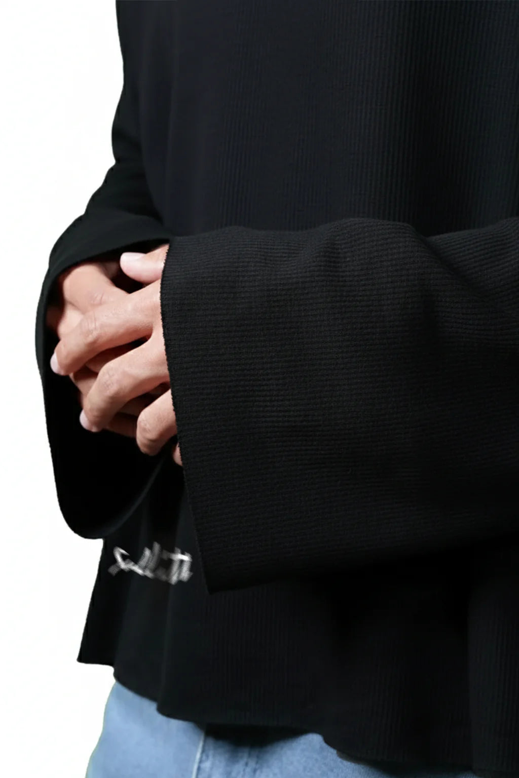 Sober State Black Crop Waffle Sweatshirt