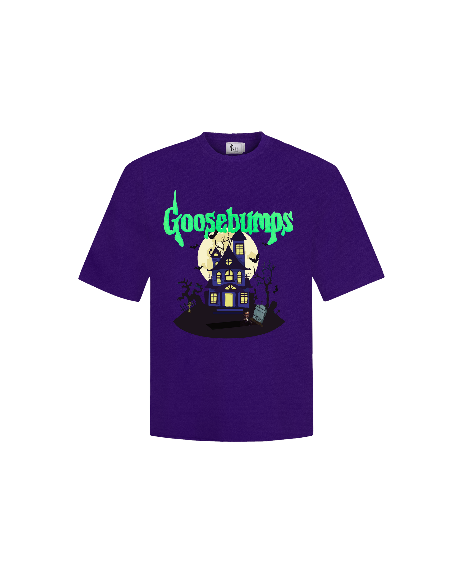 - subtle wash purple t-shirt with part screen print and part puff printed