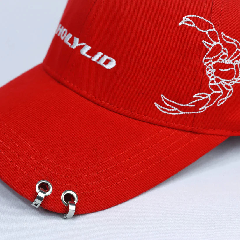 Striking white scorpion embroidery—a symbol of resilience and raw power—paired with the sleek HOLYLID logo for a bold cosmic statement. Features two distinct rings as a powerful detail, adding depth and cosmic energy to the design.