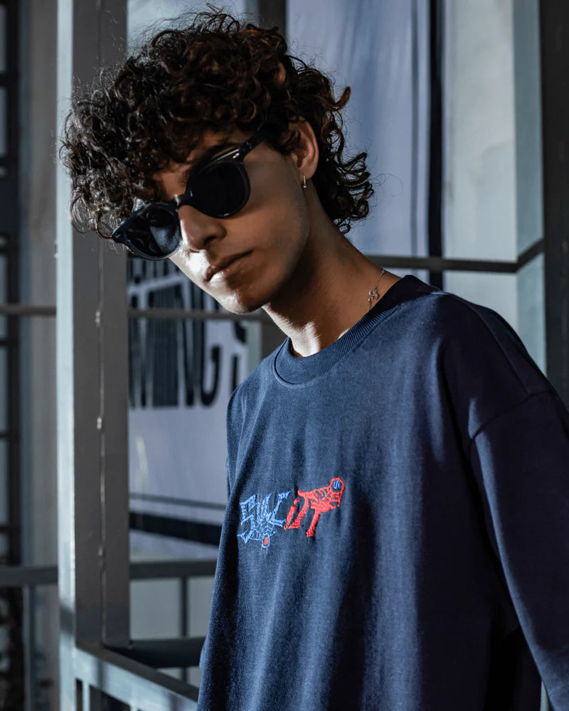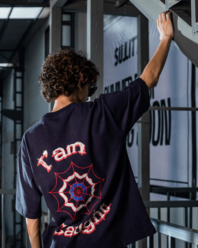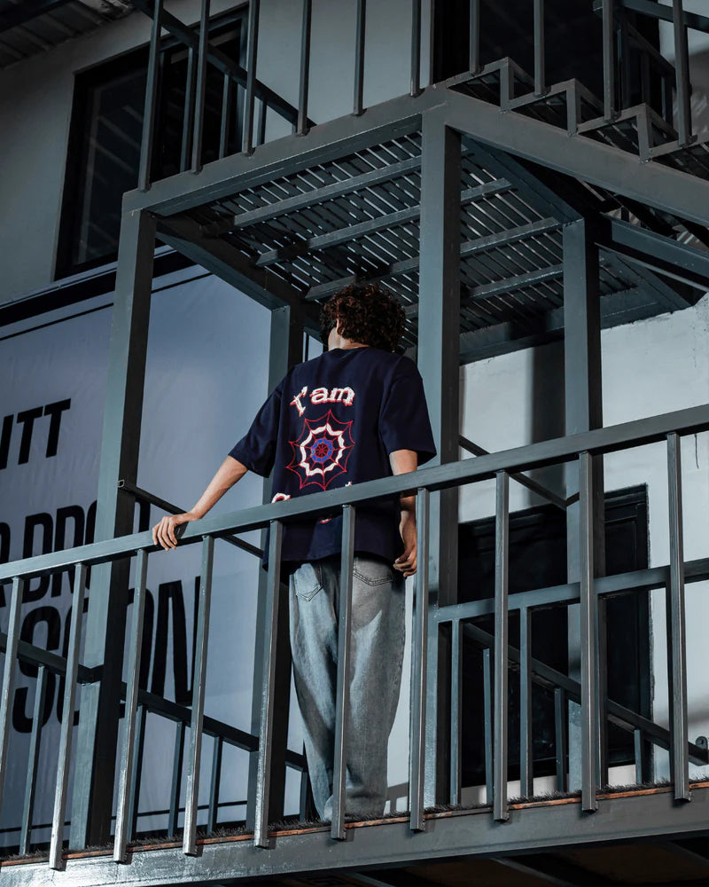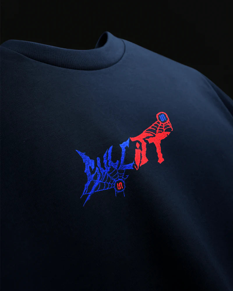 The Webbed Up Navy Blue Tee brings mystery and movement together with a bold embroidered spider graphic on the back — a quiet statement with deep detail. The front keeps it clean, while the back does all the talking.
