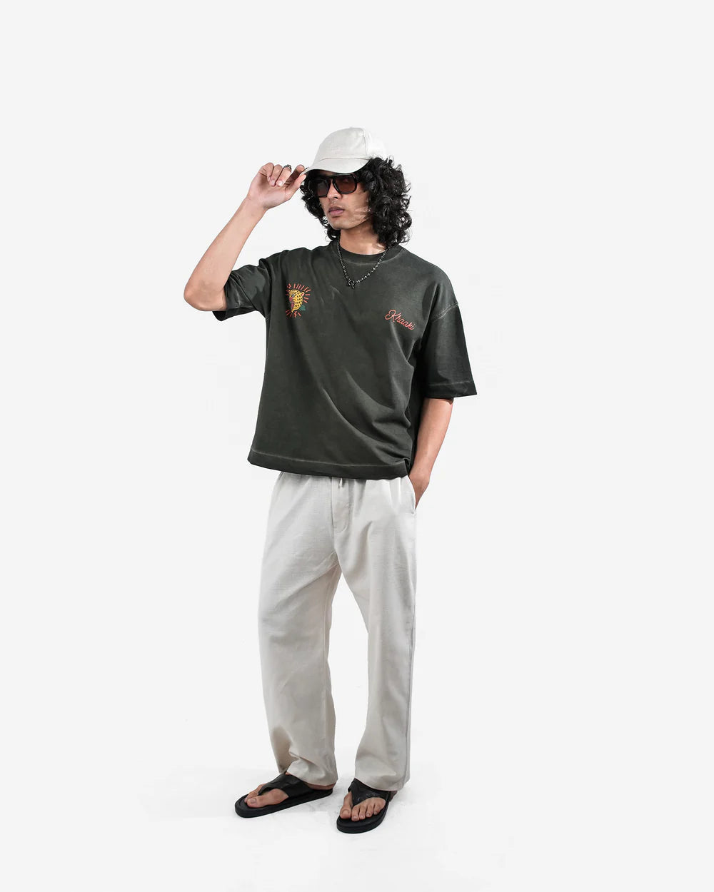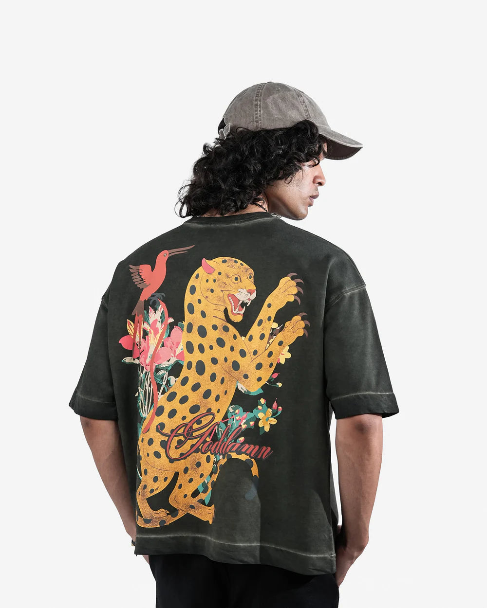 The Wild Realm Tee showcases asian artistry, weaving the vintage lived in look with the oil painted artwork to create a piece that feels both powerful and refined. Executed with a specialised screen printing technique, the graphic carries an oil-painted, gallery-worthy aesthetic—rich in depth, texture, and painterly detail.