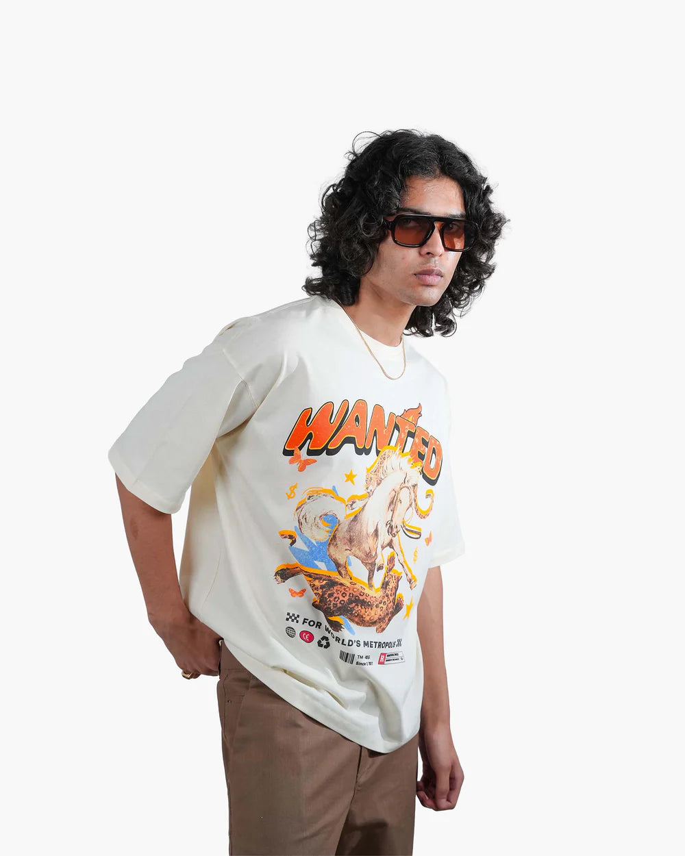 The Wild West Tee channels raw spirit and untamed elegance, immortalized through its dramatic horse-and-leopard clash artwork.